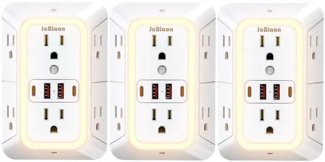 4 USB fast charging ports(2 USB C Port), 3-sided Power Strip, with 6 Adapter Spaced Outlets, and LED night light around the edges.Taking the place of a standard socket, but instead offering you many more plugs. Can be used in any room or public areas indoor.