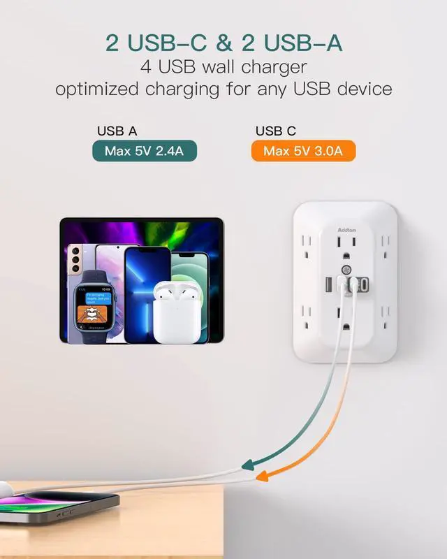 - Built in smart technology, detecting charging devices and deliver optimal charging speed automatically