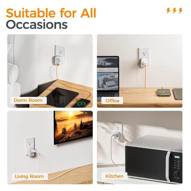 The wall plug expander can fit for standard outlet, decorator outlet. This wall outlet with multiple usb ports can keep your desktop tidy without the need for excessive adapter plugs.