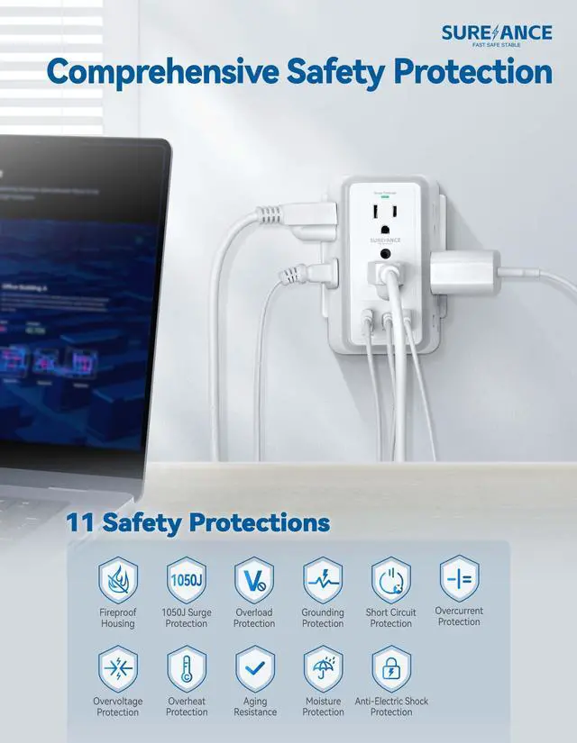 SUREANCE Elite Multi-Outlet Surge Protector Power Strip