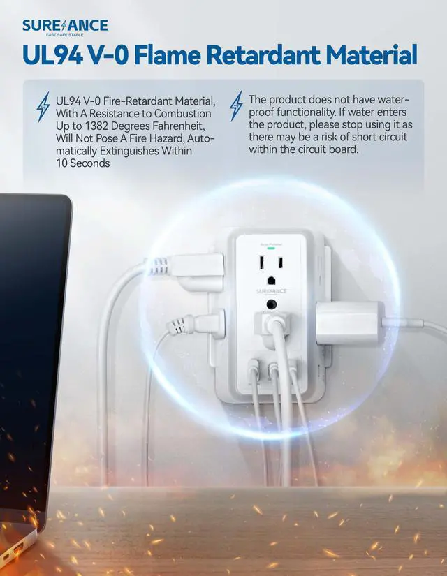 This multi plug outlet surge protector night light is not waterproof. Keep the power outlet away from water sources to prevent electrical hazards.??