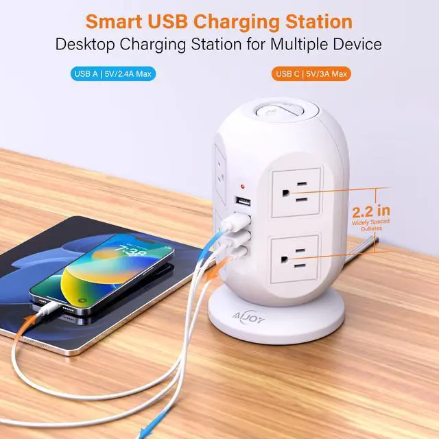- 4 USB Ports multi-functional design create possibility for your multi charging demands; Each USB-A port provides 5V/2.4A 12W max. Especially for the bedroom, bathroom, hotel, college dorm room essentials