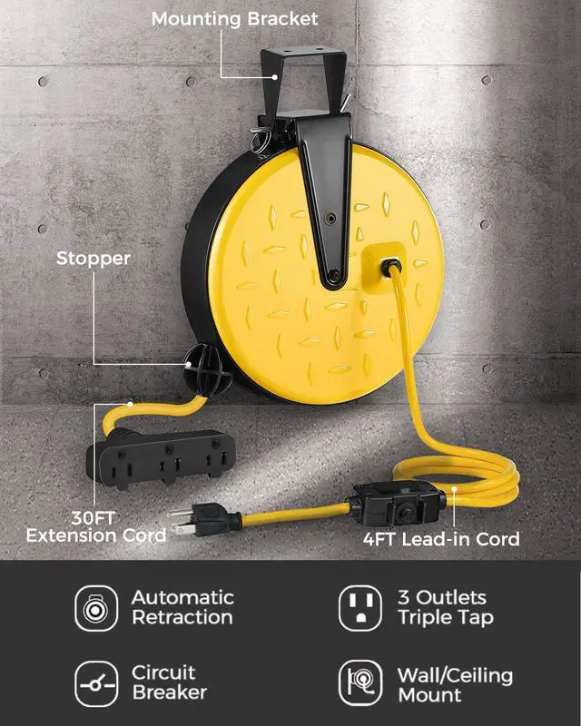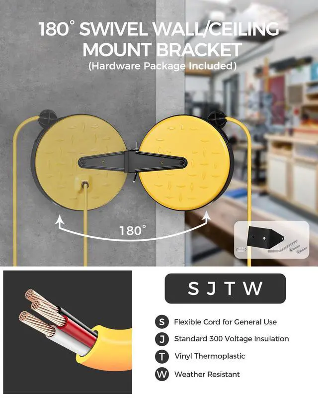 WILAWELS Retractable Extension Cord Reel and Extension Cord Storage Reel
