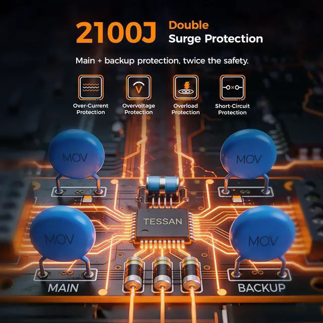 This surge protector with usb ports can safeguards your expensive computers, tv, and all other electronices from power surge attacks that might be caused by the unstable power supply, lighting and storm
