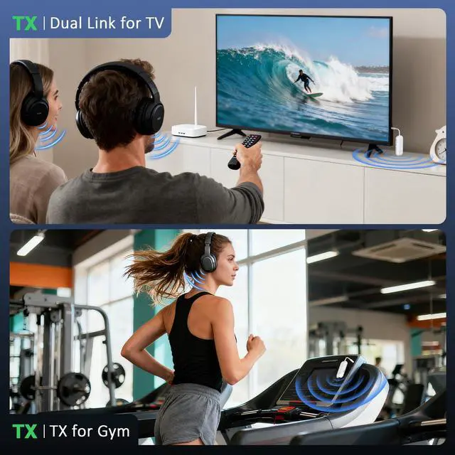 2-in-1 Bluetooth Transmitter: Supports bluetooth transmission and reception, i.e. TX and RX modes. In TX mode, you can easily turn non-Bluetooth-enabled TVs, computers, and fitness/flight equipment into bluetooth transmitters. In RX mode, connect to your cell phone, bluetooth gaming device or tablet via non-bluetooth devices such as wired speakers, stereos, car and boat audio systems, etc.