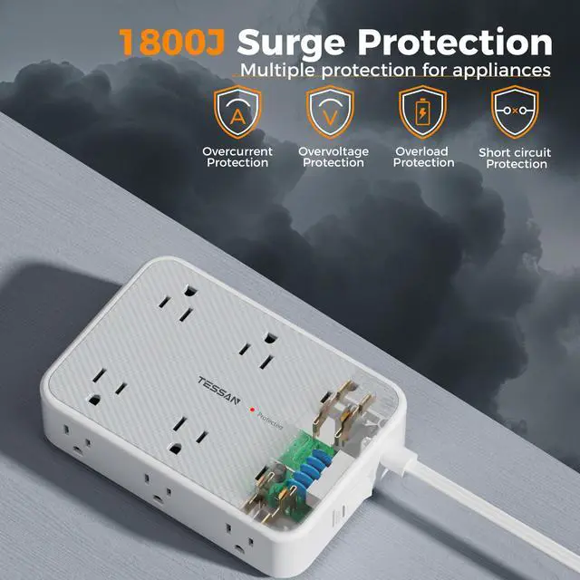 Built-in overload protection switch; When the power overload, the integrated circuit breaker will trip off automatically to protect your devices
