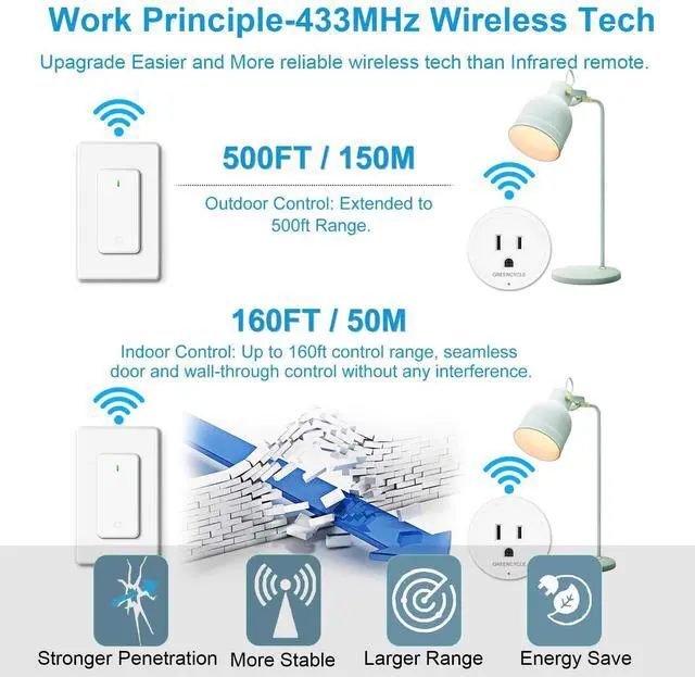 ![]() Remote Switch Outlet | ![]() Garbage Disposal Switch | ![]() 1 Remote Switch 4 Outlets | ![]() Dimmer Switch | ![]() 65w USB C Outlet |