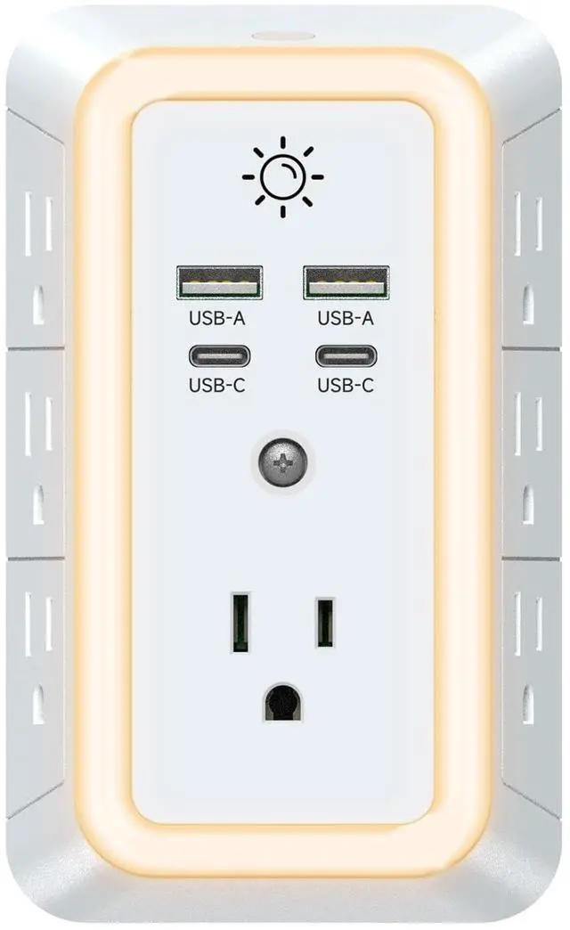 7 adapter spacing outlets, 2 USB fast charging ports and 2 USB C ports, and the night light feature makes it easy to see the outlet in dark corners or at night, making it perfect for use in a home or office area.