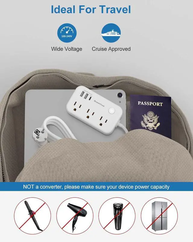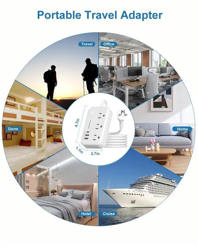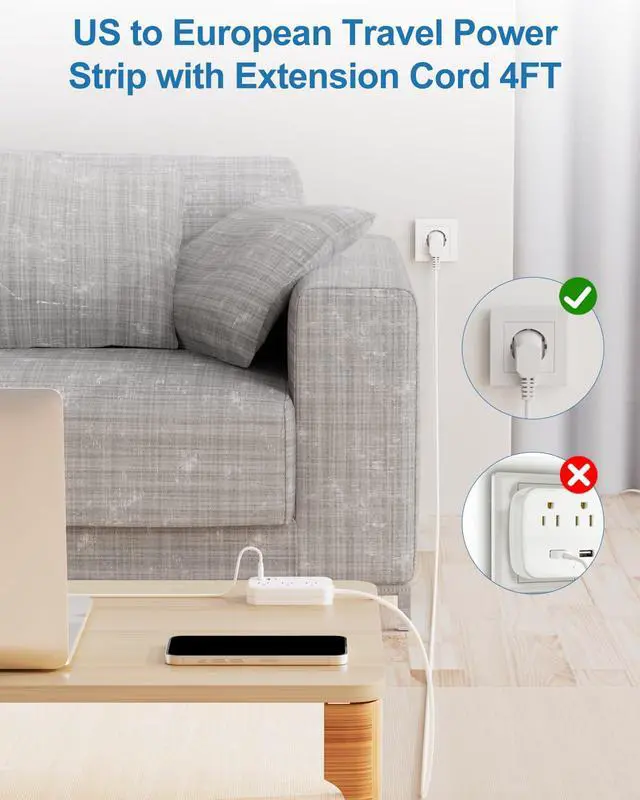This South Korea plug adapter is different from an ordinary wireless travel plug adapter, which cannot access many outlets hidden behind furniture.this adapter is much longer, it has a 4FT long extensioncord with no blocking design, which is very easy to have a centralized space to be able to charge your electronics in cruise, hotel, bedroom, bathroom, living room, office and college dormitory.