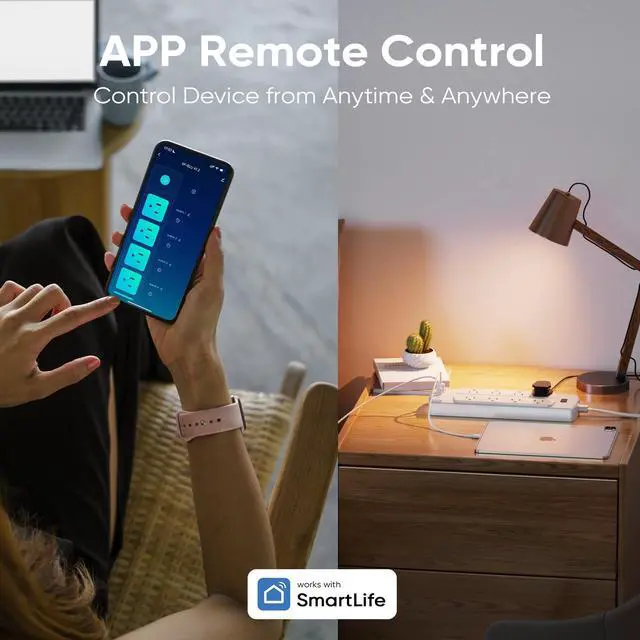 APP Remote ControlDownload Smart Life APP to schedule and remotely control up to 6 smart outlet plug at any time anywhere. Streamline your home's efficiency with our smart flat plug extension cord.