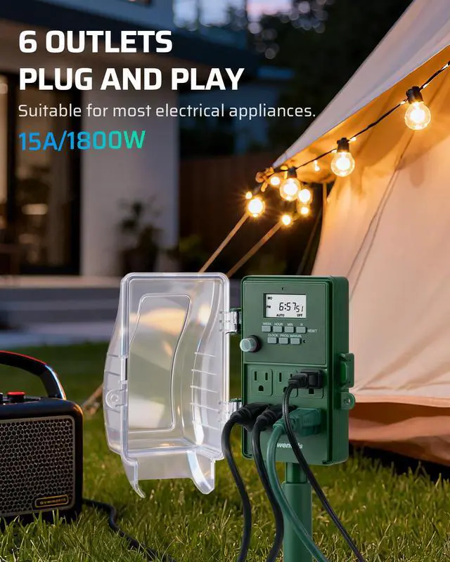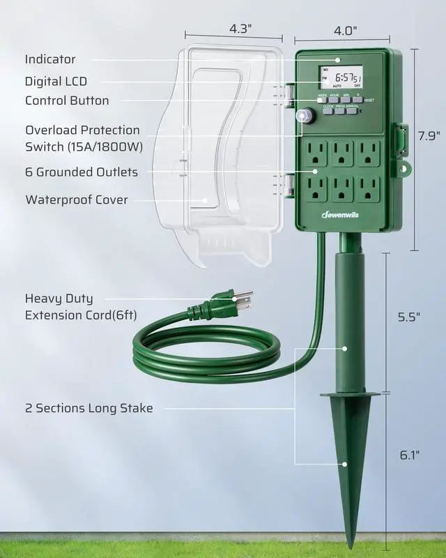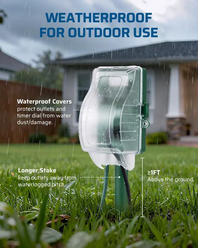 Outdoor Waterproof Power Stake Timer for Lights, Yard, Garden
