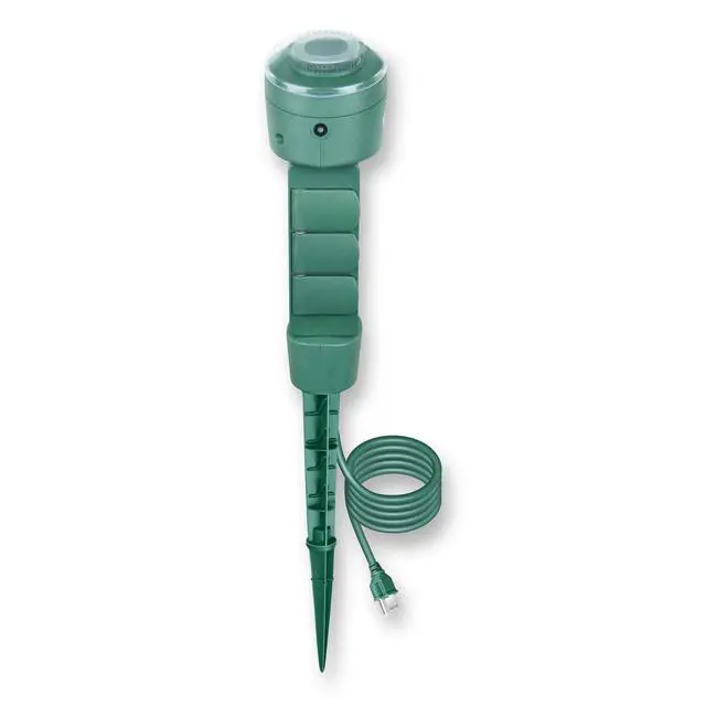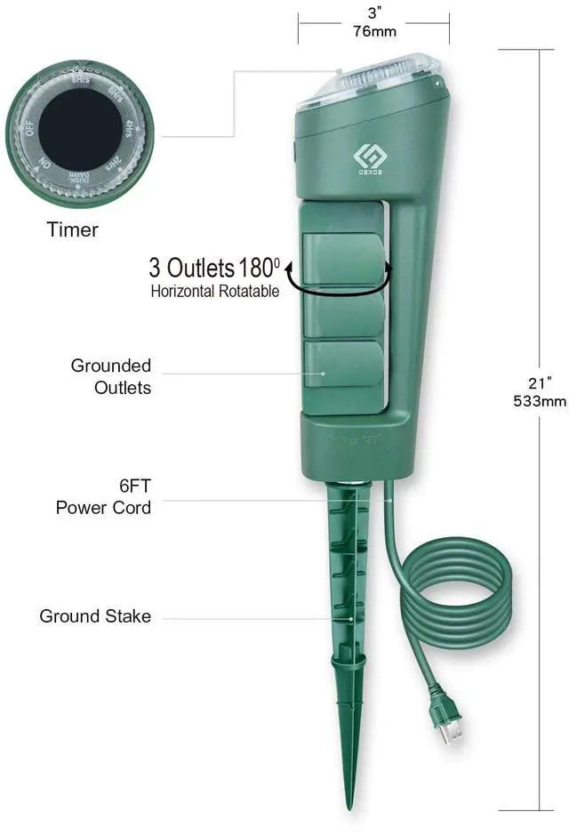 Power up your outdoor lights and decorations with ease using the OSKOS Outdoor Power Stake. Its convenient features make setting up and managing your outdoor lighting a breeze.