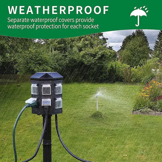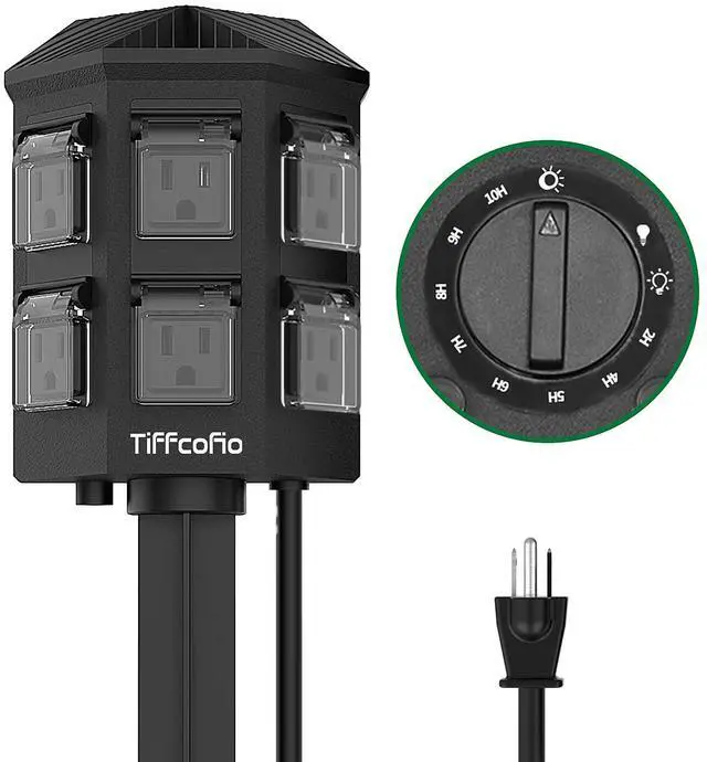 TiFFCOFiO Outdoor Power Strip Timer, Dusk to Dawn Light Sensor Countdown, 6 Feet Extension Cord Waterproof, 6 Grounded Outlets for Halloween and Christmas Decorations, ETL Listed
