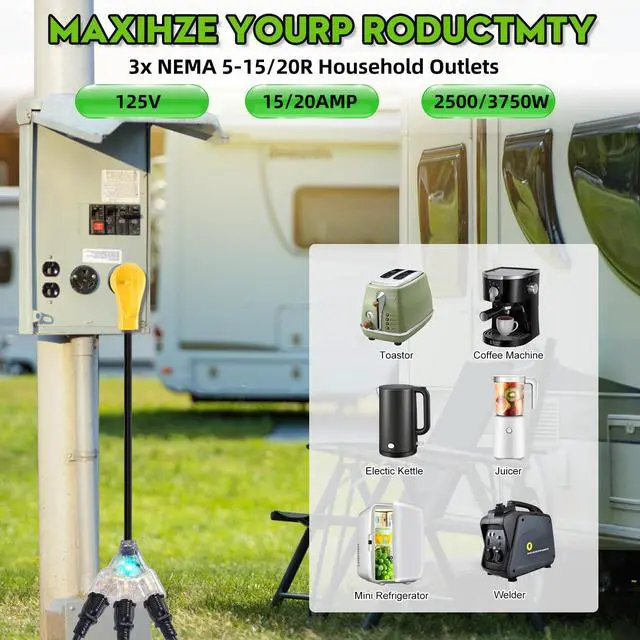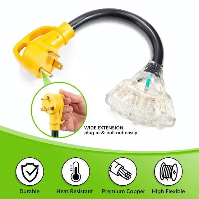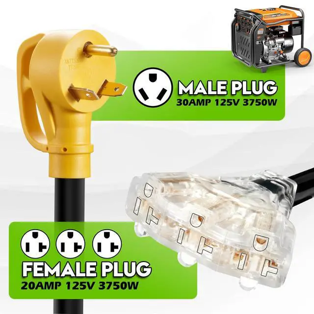 30 Amp to 110V RV Adapter Cord is made of 10 AWG copper wire and coated with STW insulating jacket.