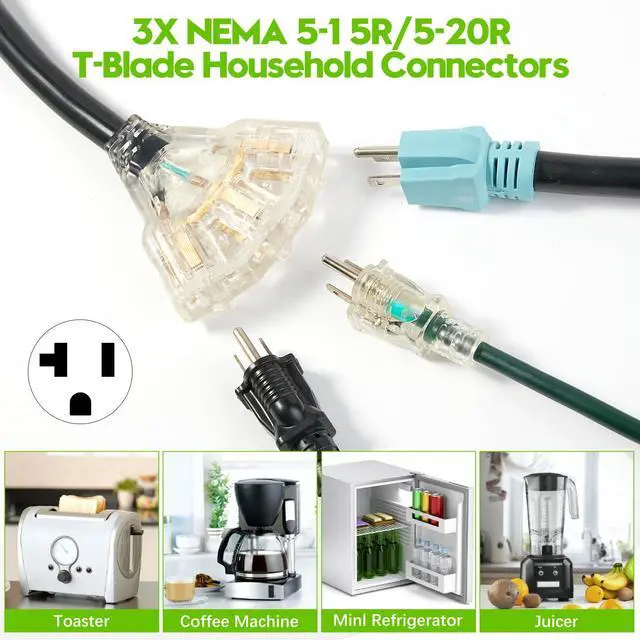 3X NEMA 5-15R/5-20R female T-Blade household Outlet for household electrical appliances and tools