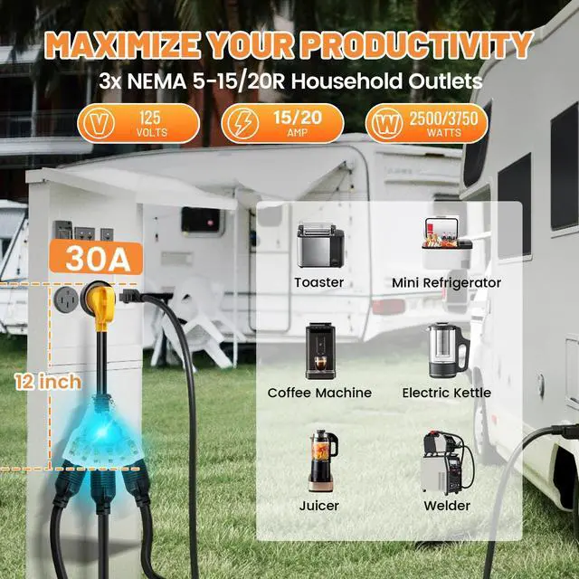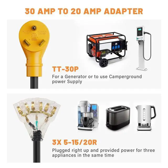 Perfect for RV owners who require a versatile adapter to distribute power from their RV's 30-amp connectionto multiple 15-amp or 20-amp outlets. Perfect for People who enjoy camping with RVs that need multiple power sources to provide power to multiple devices, appliances.