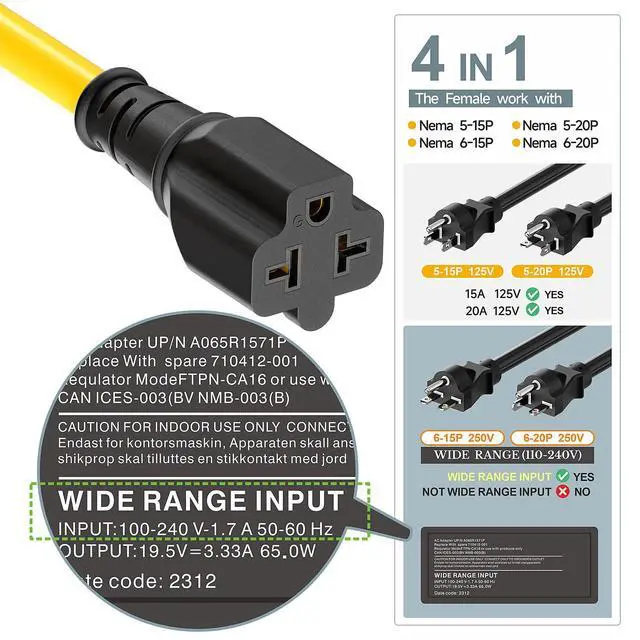 ![Alt view image 6 of 7 - [3-Feet]NEMA 5-15P Extension Cord, NEMA 5-15P to 5-15R/ 5-20R/ 6-15R/ 6-20R AC Adapter, 12AWG 15 Amp to 20 Amp T Blade Adapter Cable, 15A 125V to 20A 250V Extension Cord, 3FT](https://c1.neweggimages.com/productimage/nb640/C5MSD2603160BNHJLDD.jpg)