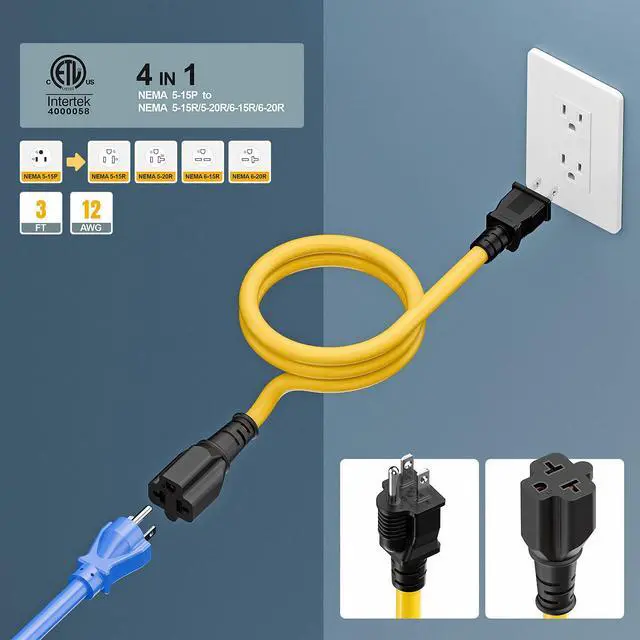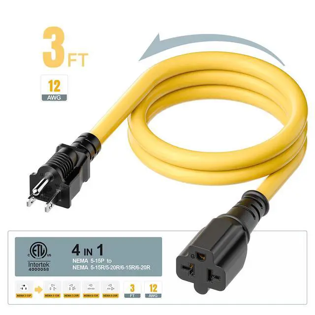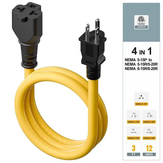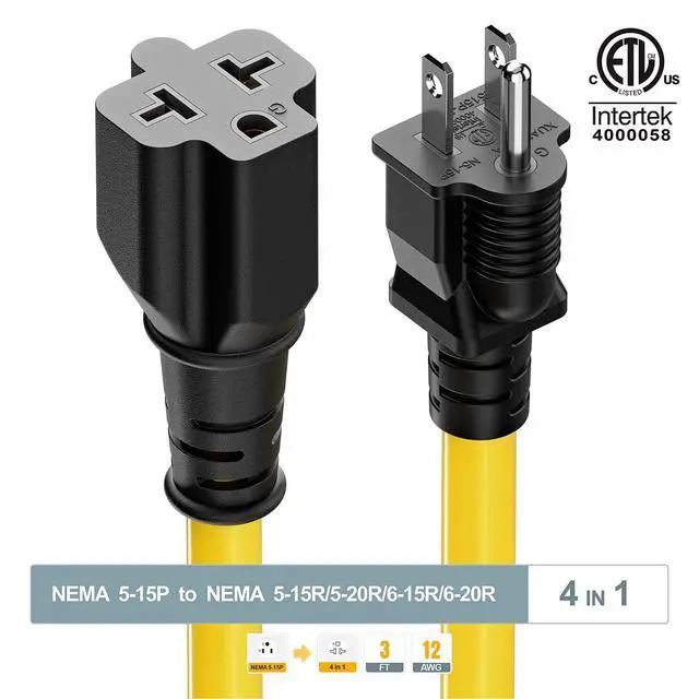 ![Main image of [3-Feet]NEMA 5-15P Extension Cord, NEMA 5-15P to 5-15R/ 5-20R/ 6-15R/ 6-20R AC Adapter, 12AWG 15 Amp to 20 Amp T Blade Adapter Cable, 15A 125V to 20A 250V Extension Cord, 3FT](https://c1.neweggimages.com/productimage/nb640/C5MSD2603160BNH7D87.jpg)