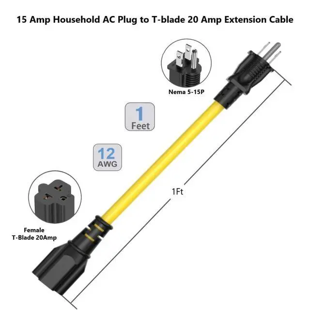 ![Alt view image 7 of 7 - [2PACK] 1FT 15 Amp Household AC Plug to 20 Amp T-Blade Adapter Cable 12AWG Nema 5-15P to 5-20R,5-15P to 6-15R/20R 20Amp to 15Amp Plug-Adapter Cord,Heavy-Duty 15A 125V to 20A 250V Extension-Cord](https://c1.neweggimages.com/productimage/nb640/C5MSD2603160BRJ1479.jpg)