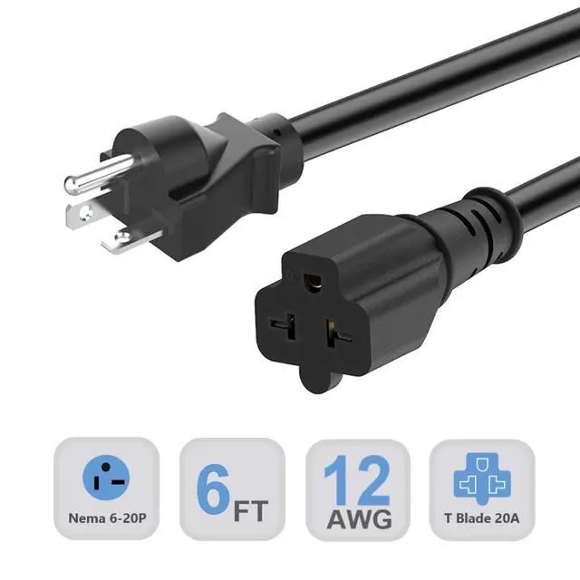 Nema 6-20 20 amp extension cable 6-Foot compatibility