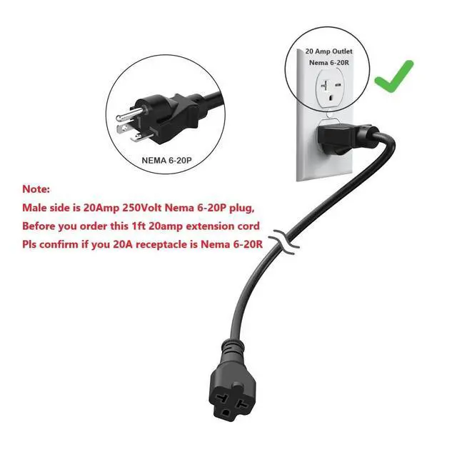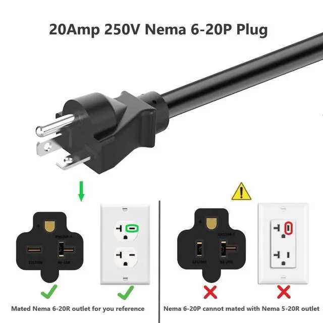 Connect to Nema 6-20R/Nema 5-20R 20A extension cord plug(Comb Nema 5-15R/Nema 6-15R 15A outlet)