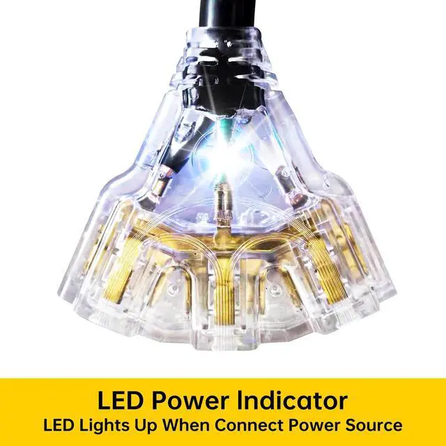 Ergonomic handle design:handle design is easier for your to plug in and out. Build-in power indicator light on three female end. LED lights up when the adaptor works.