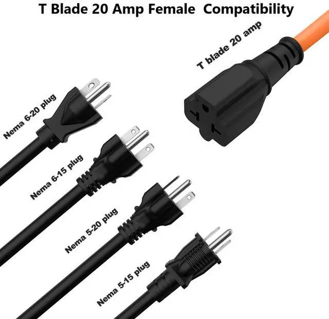 ![Alt view image 4 of 7 - [2PACK] 90-Degree 15 Amp Household AC Plug to 20 Amp Adapter Cable 12AWG, Nema 5-15P to 5-20R, 5-15P to 6-15R/20R T-Blade 20Amp to 15Amp Right-Angle Plug Adapter,125V 15A to 250V 20A Power Cord,1FT](https://c1.neweggimages.com/productimage/nb640/C5MSD2603160BZKHD58.jpg)