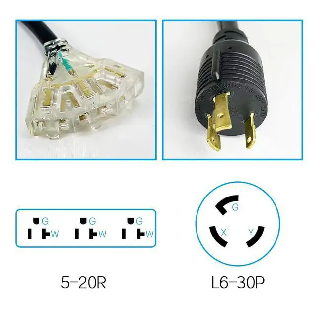 L6-30P Male to 3X5-20R(5-15R) 30Amp AC Power Adapter Cord EV power adapter outlet household adapter cord STW 10AWG 18 inch