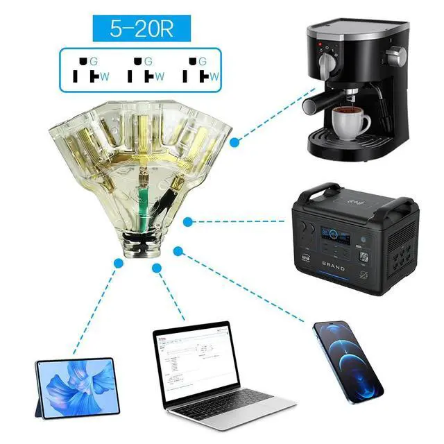 3 of American standard Tri-Outlet Household regular 5-20 Receptacle female (Regular 15 AMP Receptacle x3) in T-Bar connector. 15/20 Amp, 250Volt, Support Max 20 AMP loading. T-blade HVAC/ Power Tool / EV Upgrade.