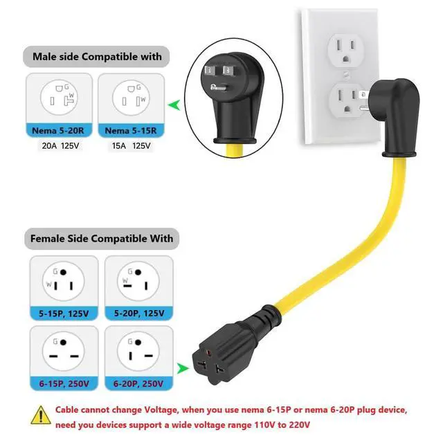 ![Alt view image 7 of 7 - [2PACK] Right-Angle 15 Amp Household Plug to 20 Amp Adapter Cable 12AWG,Nema 5-15P to 5-20R,5-15P to 6-15R/20R T-Blade 20A to 15A 90-Degree Plug Adapter,125V 15A to 250V 20A Extension Cord,1FT](https://c1.neweggimages.com/productimage/nb640/C5JMD26032302WMVW3E.jpg)
