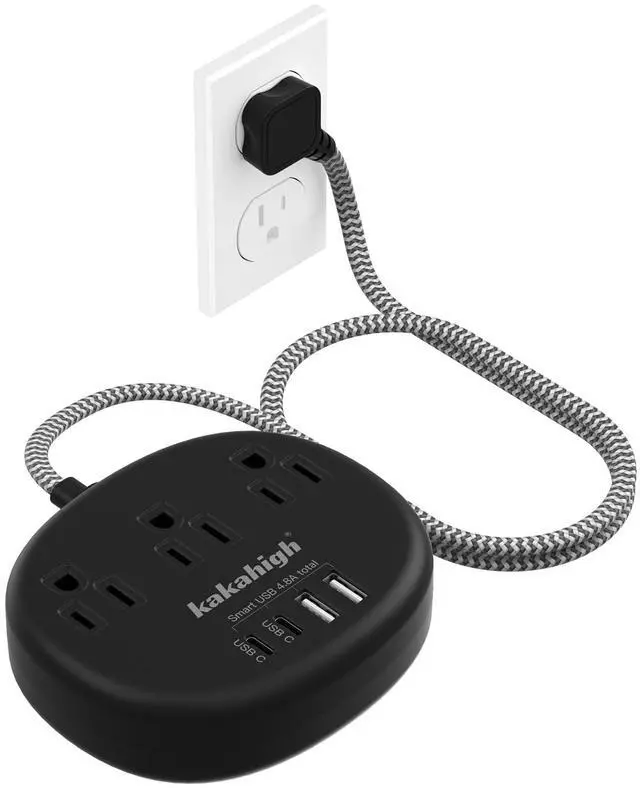 Black Extension Cord with 3 AC Outlets & 4 USB