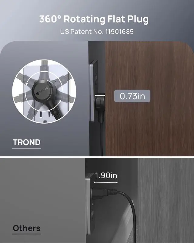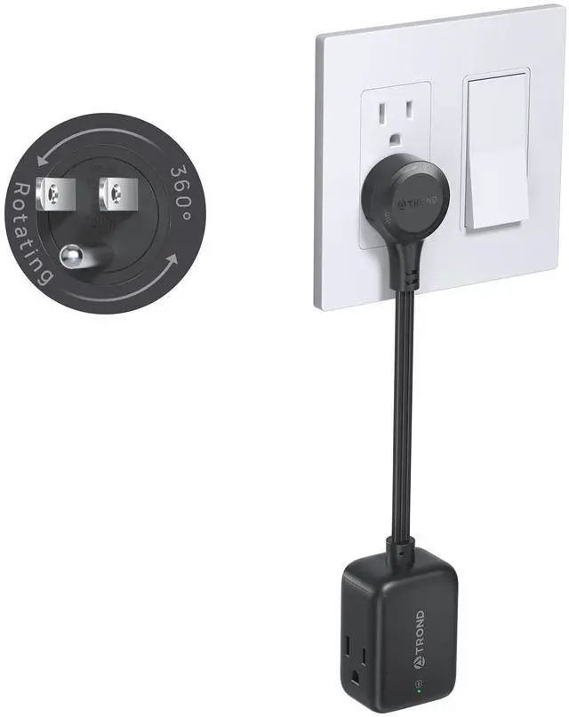 The 360-degree rotatable plug adapter is perfect for awkward areas and allows you to direct the cord where you want it. Easy to use in small, cramped spaces and keeps everything snug. Suitable for upside-down outlets, sideway outlets, and switched outlets.