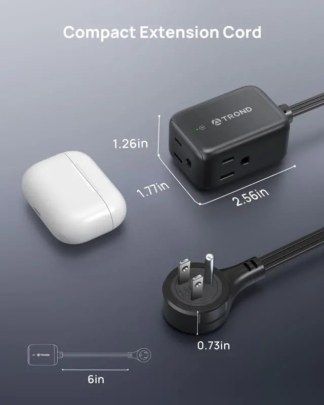 Merchant VideoTROND outlet extender surge protector with a 6-inch cord fits perfectly in kitchen countertop wall outlets. It hugs the outlet, keeps the appliance close to the wall, and rotates in your desired direction. Max.1875W(125V/15A).