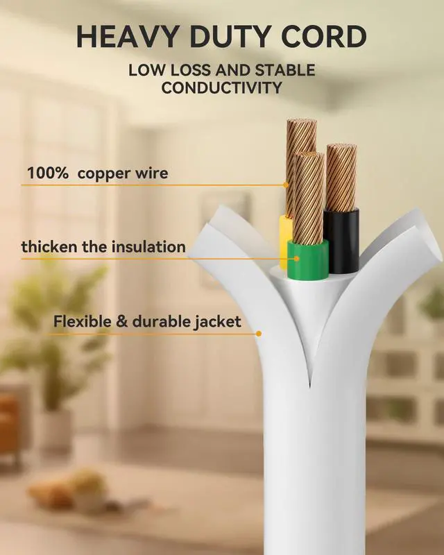 The white extension cord is soft and wear-resistant, and it won't damage floors or walls