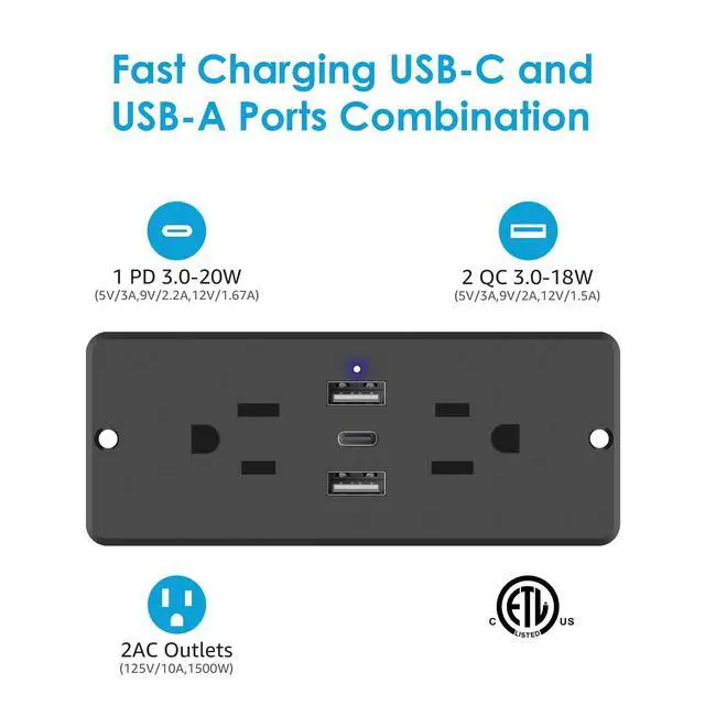 - Come with fast charging QC 3.0 18W Max USB-A port and PD 3.0 20W Max USB-C port.