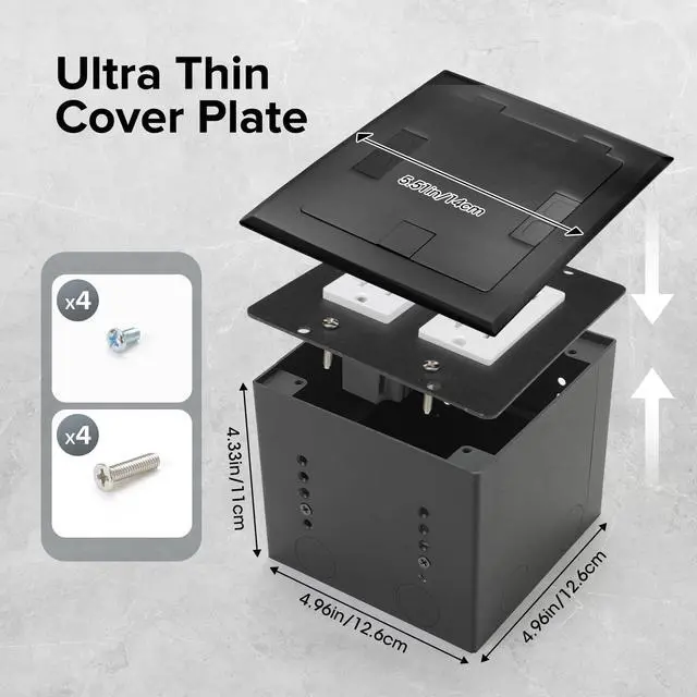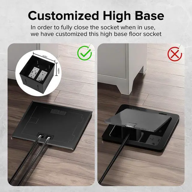 High Base Design: The recessed flat hidden floor electrical outlet box is equipped with an 4.33" high base box. In order to perfectly cover the socket when in use, we have specially designed a large-sized base. In addition, the installation space is also larger. Please carefully consider the size when purchasing.
