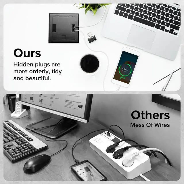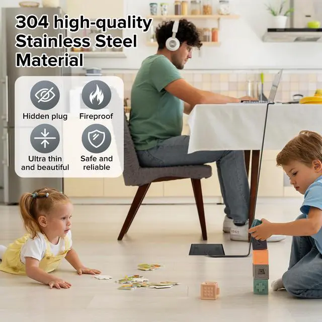 Easy to use: Gently tap the hidden handle, pull up the panel, connect to the power outlet for charging, and hide it on the floor or countertop when not charging.