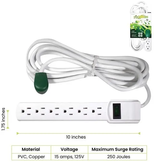 Size and Other Details: The white colored surge protector is cUL listed and meets all industry standards. Go Green and follow the instructions located on the products package for recycling (visit the GoGreen Power homepage for additional details) Product manufactured in China and Vietnam