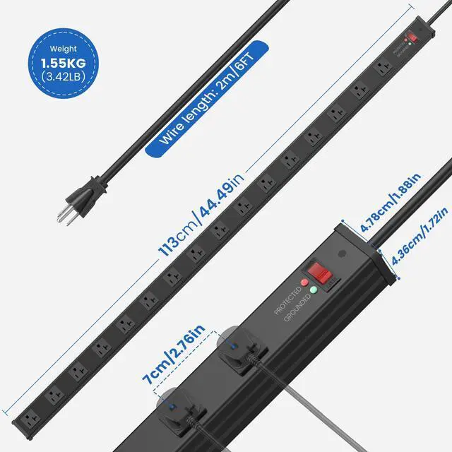 Long metal power strip With 16 widely spaced outlets, the distance between the sockets is 2.6inch,Widely spaced design will be suitable for larger plugs,useful in the routing of power for the various components and organize the power cord.