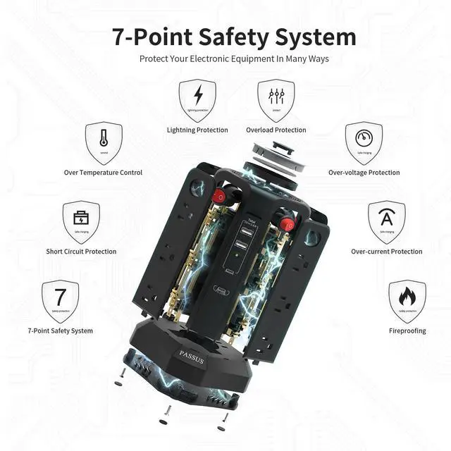 Smart Power Strip with Night Light: PASSUS multi-plug tower with a white light mode that features three brightness levels to let you choose the right amount of light for your own needs