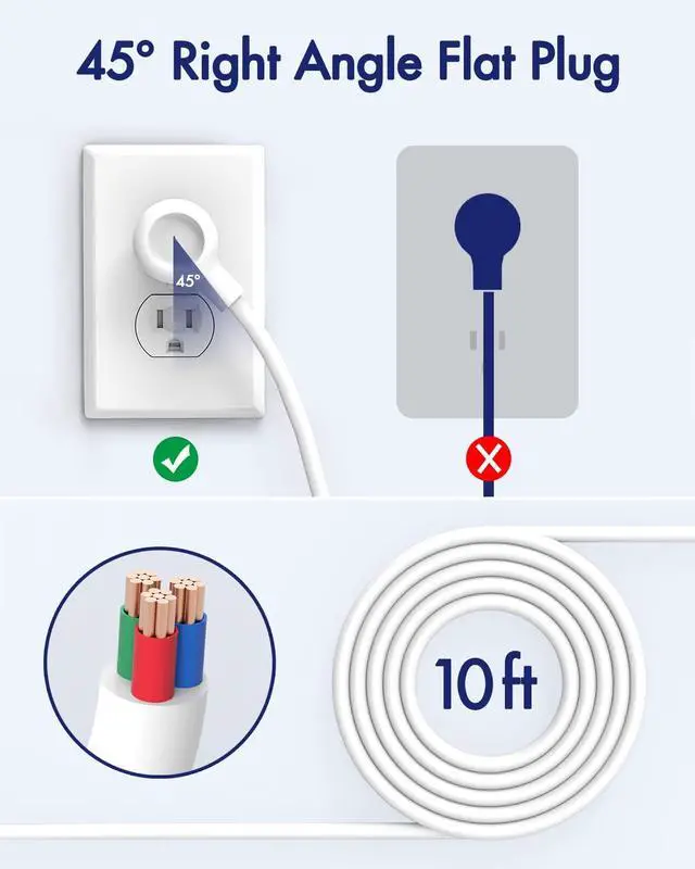 Equipped with a right angle flat plug for fitting in tight spaces, perfect for your nightstand, dresser, workbench, worktop, or tabletop.
