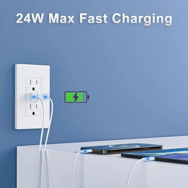 4.8A /24W Total): Delivers up to 4.8A /24W combined across both ports for fast and efficient charging.