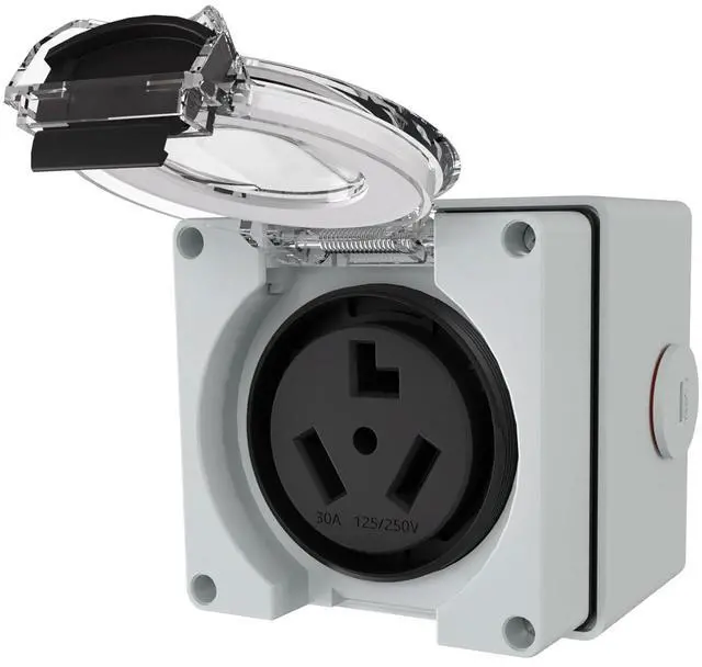 : NEMA 10-30 Receptacle, one power outlet with protective box.