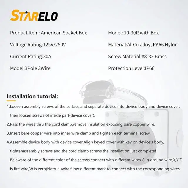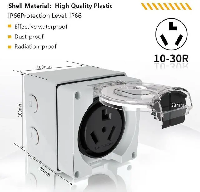 Applicability: Outlet for Electric Dryers, Heavy Duty Industrial Grade Power Receptacle, widely used in trailer, camper, RV, car, boat, home, commercial entrance.