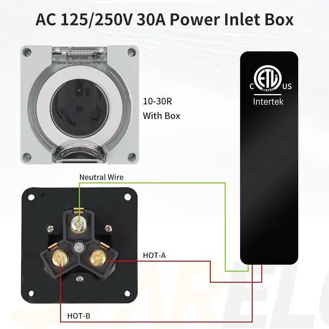 Parameters: ETL Listed, 125/250V, 30A, 3 Pole 3 Wire No Grounding.