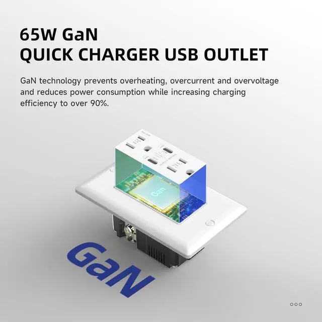 GaN TECHNOLOGY: USB outlets powered by the GaN (Gallium Nitride), USB C PD 3.0 and PPS charging technologies ensures safe and efficient charging, also without charging overheating