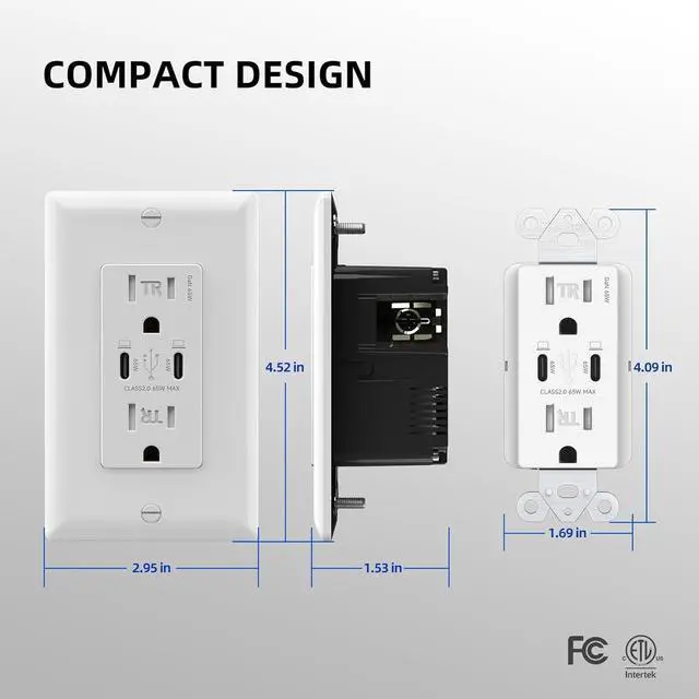 EASY TO INSTALL: USB charging outlet support side and back wiring, easy to install and come with a step-by-step guide for user convenience; Compatible with all electrical boxes and wall plates, ideal for use in home, office, library, school, or business