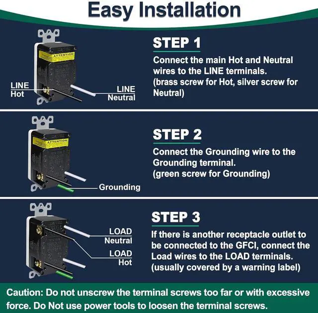 Easy installation: Designed for easy installation with back and side wiring, gfi electrical outlet cannot be reset if mis-wired. Wallplate and screw included