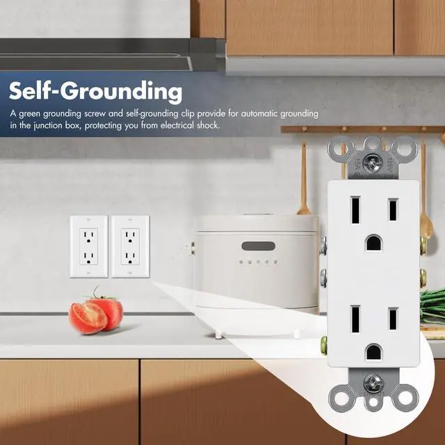 Self-Grounding A green grounding screw and self-grounding clip provide for automatic grounding in the junction box can protect electrical appliances and effectively avoid electrical damage from strong electric charges and also protect you from electrical shock