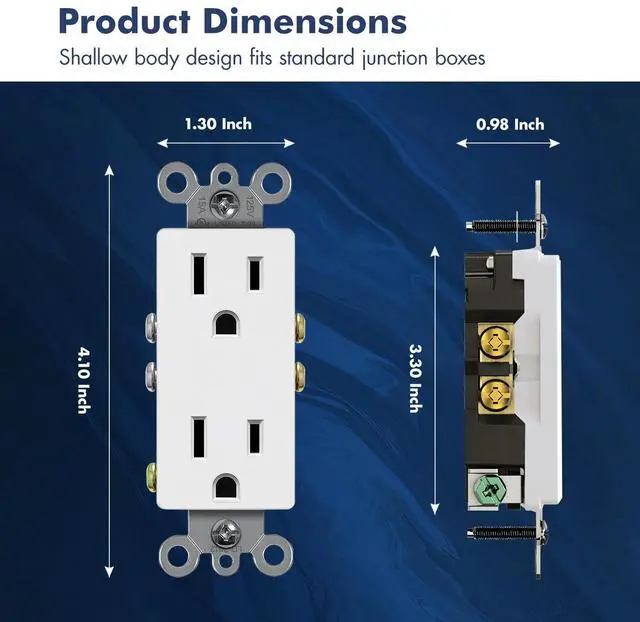 Stylish Design The standard decorative wall outlet features a sleek and modern design that complements any home or office decor, providing a clean and contemporary look. Designed for easy access, 15a outlet does not include tamper-resistant shutters, making it simple to plug in and unplug devices without unnecessary resistance